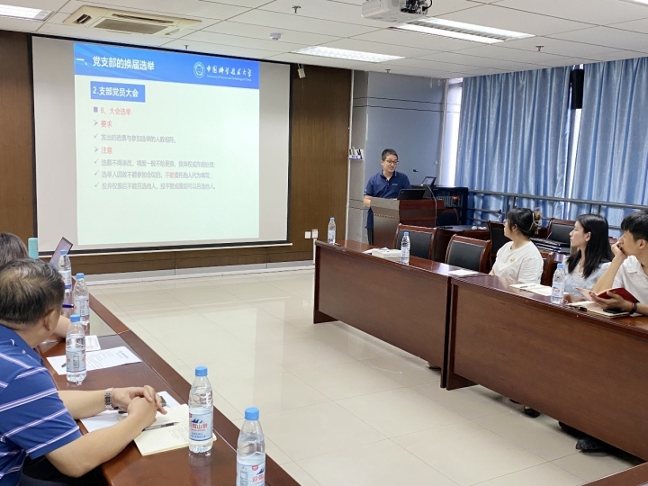 党委副书记熊成就近期支部工作、党员宣誓仪式等进行了部署,并从“规范党支部标准化建设”和“规范党员发展流程”两个方面开展了党务培训。熊成详细介绍了支部的换届选举、组织生活、党员发展流程等方面工作,并对党务工作中实际遇到的问题进行答疑。