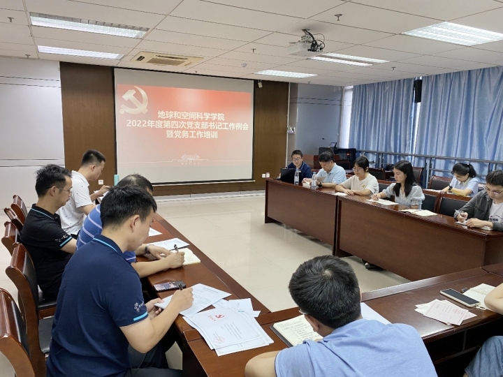 9月14日下午,地球和空间科学学院2022年度第四次党支部书记工作例会曁党务工作培训在教学行政楼706会议室召开,党委书记刘斌主持会议,党委副书记熊成、各党支部书记(支委)、党务秘书孟令宇参加会议。