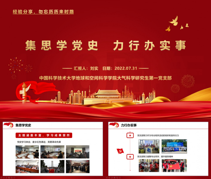 在学习交流过程中,我校地球和空间科学学院大气科学研究生第一党支部副书记刘实同志代表本支部作《集思学党史、力行办实事》分享。从落实“三会一课”到学习“重要讲话精神”再到主题党日等组织生活开展情况,逐一进行介绍。在党史学习教育经验分享环节,他着重介绍了该支部依托党小组开展个性化学习,多次开展“学党史、悟思想”主题党日活动,并通过互相分享学习成果,扩大了主题覆盖面,提高了学习成效。另外,也介绍了支部以“凝聚专业力量,践行服务精神”为目标,在组织科技活动周、夏令营、社区服务和疫情防控等活动中的宣传和组织工作。