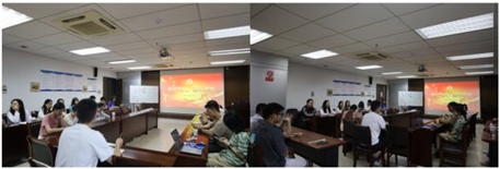 朱红霞同志向大家介绍了气象监测的发展进程,详细介绍了地面气象监测及监测站的分类和气象雷达、气象卫星等。随后观看了国家卫星气象中心主任许健民对于未来气象卫星的介绍视频。
