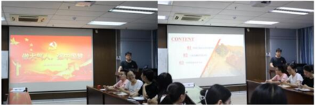 之后由许佳敏同志介绍红色历史中的大气人。通过视频学习更加深刻的了解到中国现代气象学奠基人叶笃正院士、气象学家和教育家竺可桢、两弹一星功勋奖章获得者赵九章和新中国气象事业的主要创建人涂长望同志。