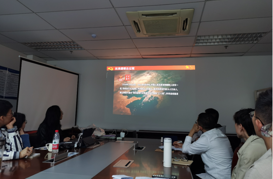 接着,大会开展“抗美援朝”党史学习主题党日活动。本次主题党日活动由第三党小组的6位同学负责,组长程铭主持会议,会议以PPT讲解和分篇章讨论进行。本次分享围绕“正义担当”,“血性迸发”,“英雄赞歌”和“伟大胜利”四个篇章展开。首先,程铭讲述我党决定抗美援朝出国作战的原因,“打得一拳开,免得百拳来”,从安全利益、经济利益以及政治文化三个方面考虑,阐述中国出兵援朝的必要性。随后,程铭同志以视频形式回顾了抗美援朝中的五场重点战役,并重点介绍了上甘岭战役,和长津湖战役,以及其中涌现的邱少云、黄继光、龙世昌等英雄事迹。讨论环节,程美琳同志结合前段时间党支部组织观看的《长津湖》电影讨论了其中印象深刻的部分,许明月同志结合我们所学专业,分析了同纬度下长津湖冬季冷的气象背景。之后,程铭介绍了抗美援朝中战斗英雄的英雄事迹,如杨育才、胡修道、张桃芳等。在讨论中,杜秋燕同志表示,战斗英雄不容亵渎,面对网上对烈士的污蔑言论,应该坚决抵制反对。最后,程铭从人民的生活、军事、政治觉悟、战略等四个方面分别讨论了“抗美援朝”伟大胜利的意义,并组织讨论了中国坚持将在朝牺牲志愿者遗骸以最高礼遇迎接回国的原因及意义。