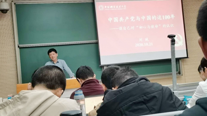 2020年10月21日晚,地球和空间科学学院党委书记刘斌为学院2020级本科生作了题为《中国共产党与中国的这100年》的党课。