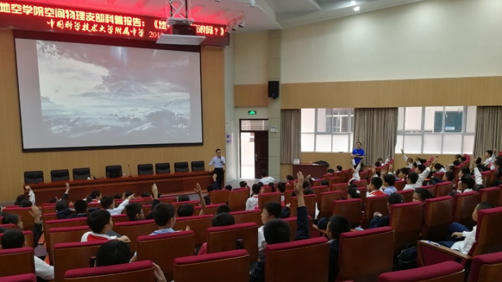 2019年10月11日,地空学院空间物理专业教工支部前往科大附中开展主题党日活动,在科大附中和科大附小的同学中开展日地空间科学科普宣传活动,同时这也是空间物理教工支部,作为首批全国高校“双带头人”教师党支部书记工作室的建设工作的一部分。