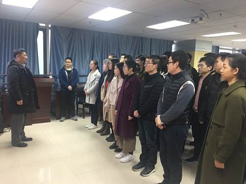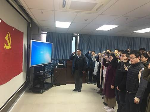 在党委书记刘斌的带领下,学院2018年度发展的预备党员进行了入党宣誓,部分党支部书记重温入党誓词。