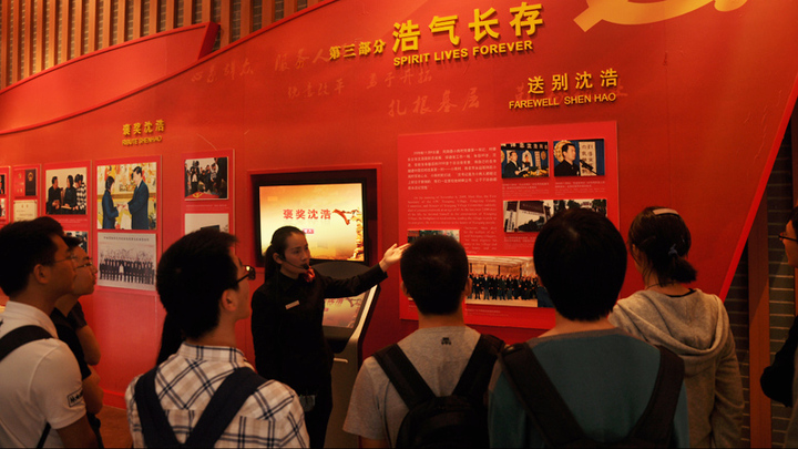 11时许,同学们从大包干带来的震撼中走出,来到了沈浩同志纪念馆,这里和当年沈浩生活、办公之处相连,陈列着不少他生前的物品,叙述着其短暂人生中不平凡的故事。大家在那些并不遥远的故事间流连,虽然曾经了解过相关事迹,但真正身临其境更引得大家追思。沈浩的六载村官路,给小岗村带来了翻天覆地之变化,也给后世留下太多思索与感动。