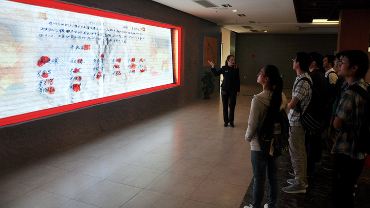 接下来同学们前往1978年小岗村18户村民按下红手印的“当年农家”进行参观,这里完整的保留了40年前的面貌:低矮的茅草屋、简陋的生活环境、村民秘密集会的局促房间。身处这里,大家仿佛能听到当时的村民决定自己命运的呐喊,对先辈的时代、以及时代的精神有了更切实的理解。