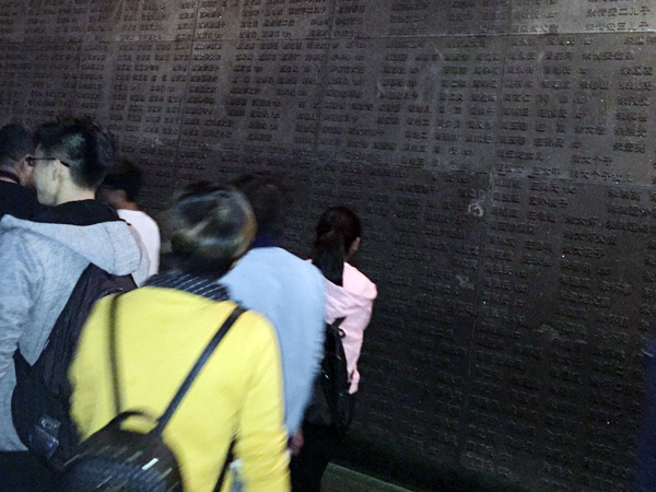 顺着参观的人潮进入馆区,一下子仿佛回到那个烽火连天,山河破碎的年月。馆内虽然人很多,但大多很安静,只有纪录片和飞机枪炮的声音,我们看到日军发动侵略战争,进攻南京,中国守军誓死不退,南京不幸失守开始,日军发动了惨无人道的大屠杀。