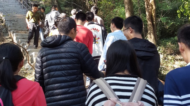 在参观完革命烈士陵园之后,全体支部成员在支部书记的带领下,集体攀登大蜀山。之前的半个月,合肥一直是阴雨霏霏的天气,今天的好天气,非常适合户外运动。通过爬山,锻炼了身体,为日常繁忙的科研工作带来新的活力。同时爬山的过程,也给了支部各成员一个相互深入了解的机会,为日后支部开展工作提供了有力的条件。
