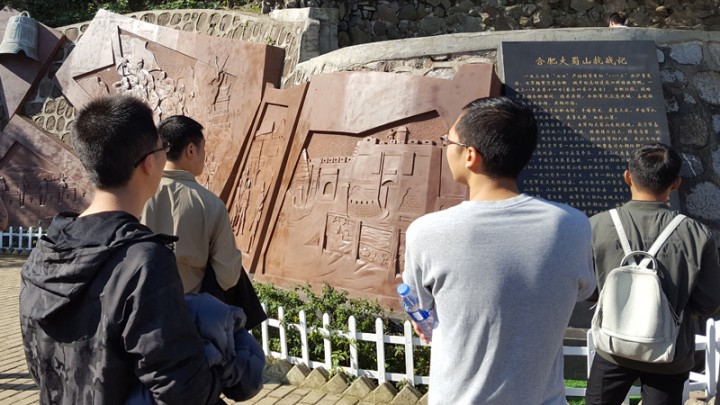 在到达蜀山大蜀山烈士陵园后,支部全体成员首先集体参观了革命烈士纪念碑。大蜀山有着深厚的革命历史传统,无论是国内革命战争,抗日战争,还是解放战争,这里都涌现了大量为报效祖国建设祖国献身的革命烈士。今天我们虽然身处和平年代,但是革命先烈为国家为民族抛头颅洒热血的大无畏精神,依旧对于我们有着重要的激励意义。