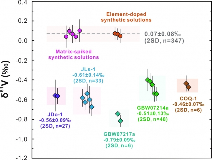 低钒含量碳酸盐岩钒同位素测量方法上取得重要进展