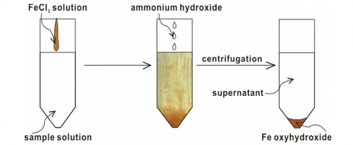 该工作开发了有效的分析方法填补了这一空白。他们用铁共沉淀方法(如图1)来预富集样品中的V元素,以便将V元素与大量的Ca、Mg等基质元素分离,接着通过离子交换树脂除去引入的Fe,样品进一步纯化后,用MC-ICP-MS测量(样品-标样间插法)样品的δ51V值。