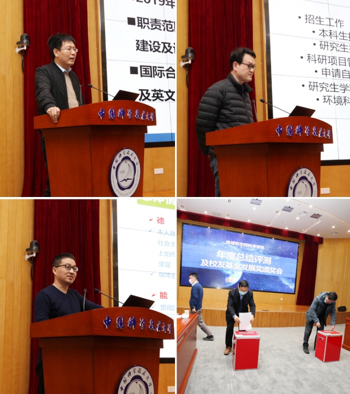 2021年1月27日,地球和空间科学学院2020年度民主评测会暨校友基金发展奖颁奖仪式在东区物质科学楼3楼报告厅召开。学院100余位教职工参加会议,院长朱日祥院士和部分学生在线参加会议。