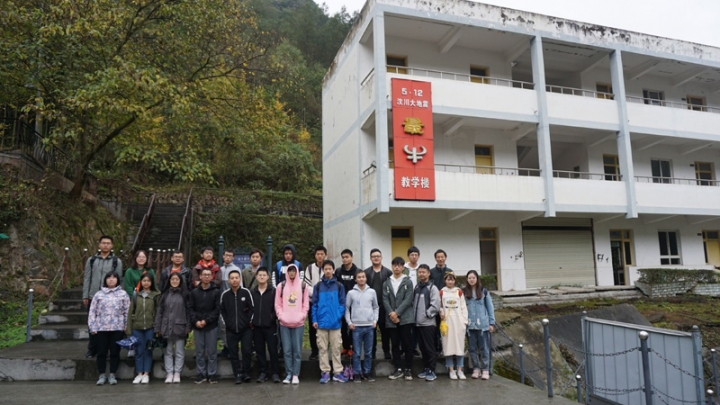 2019年11月10日,16级固体地球物理的23名同学在文健、万柯松、胡峰三位老师的带领下,共同赴往四川进行本次地球物理基础实验课程的野外实习。本次实习的选址在四川,主要活动围绕08年汶川地震留下的痕迹与地质现象展开,在学习地震监测、分析等相关专业知识的同时实地地了解地震灾害的人文背景及其带来的社会影响,更深刻地体会到地震学研究在实际应用中的重大意义。