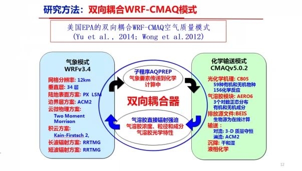 俞教授主要从事对气溶胶-云-气候-能源的相互作用模型的参数化及发展U.S. EPA双向耦合的WRF-CMAQ空气质量模式,通过不同时间和空间尺度 (城市-区域-全球尺度) 的多元数值模拟研究大气污染-灰霾(气溶胶)-云-气候-能源的相互作用及雾霾的形成机制。在本次报告中,俞教授向我们介绍了他使用双向耦合WRF-CMAQ模式,并结合多种排放源、地基和卫星遥感的空气污染物、百度出行强度指数,以及城市人口、面积等多项数据,对2020年初中国新冠肺炎疫情限行期间空气质量的研究。
