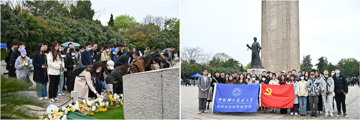 梨花风起正清明,缅怀英烈寄深情。正值清明之际,中国科学技术大学地球和空间科学学院空间物理研究生第二支部与大气科学研究生第一支部联合南京大学大气科学学院21级与22级硕士生党支部,共赴南京雨花台纪念革命先烈,砥砺初心。感受先辈们的革命精神,增进青年学生党员的爱国主义情怀。