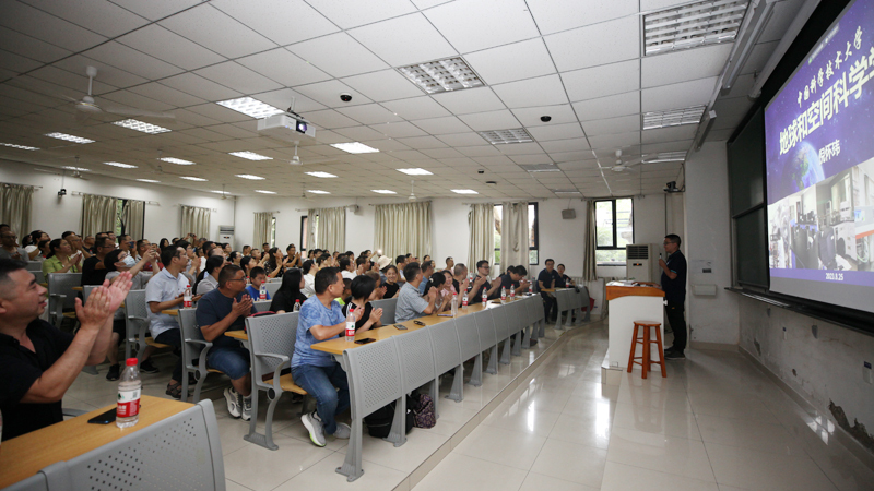 8月25日,地球和空间科学学院迎来121名2023级本科新生。下午四点,学院2023级本科新生家长见面会在东区第一教学楼1101教室召开,一百多名家长现场参会,同时还有五十余位家长参加了网络会议。本次家长会由学院党委书记熊成主持,学院党委书记刘斌、副院长倪怀玮、李锐以及大气科学专业主任王雨、空间科学与技术专业主任卢三、2023级本科1班班主任党童、2班班主任夏琼霞等应邀参会。
