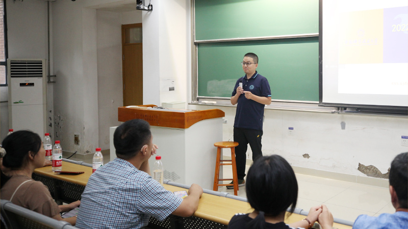 熊成副书记向家长们介绍了学院近几年毕业生的就业情况。他不仅介绍了本科毕业生的就业情况,还介绍了硕士和博士研究生毕业后的就业情况。