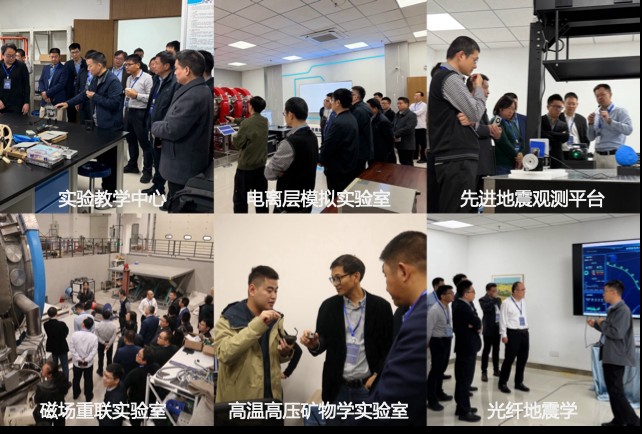 会议间歇,与会代表在我院师生的陪同下,参观了学院的实验教学中心、电离层模拟实验室、先进地震观测平台、磁场重联实验室、高温高压矿物学实验室和光纤地震学实验室,系统了解学院实验教学体系、前沿观测技术与重大科研装置的功能与应用。