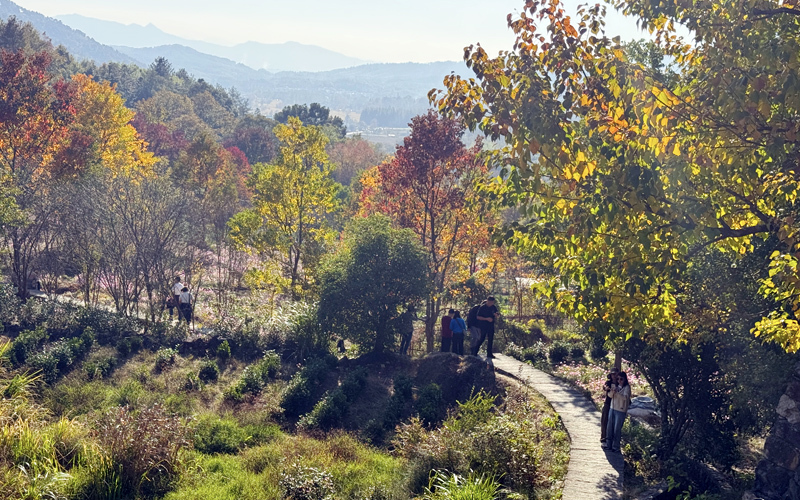 11月15日上午,三辆大巴准时从科大花园出发,开启了为期两天的旅程。首站抵达被誉为“画里乡村”的塔川。时值最佳赏秋季,绚烂的红叶、古朴的黑瓦白墙、成片的粉黛乱子草与金黄的稻田交织成一幅绝美的田园画卷。老师们漫步其中,或驻足欣赏,或举起相机记录这醉人秋光,气氛轻松愉快。