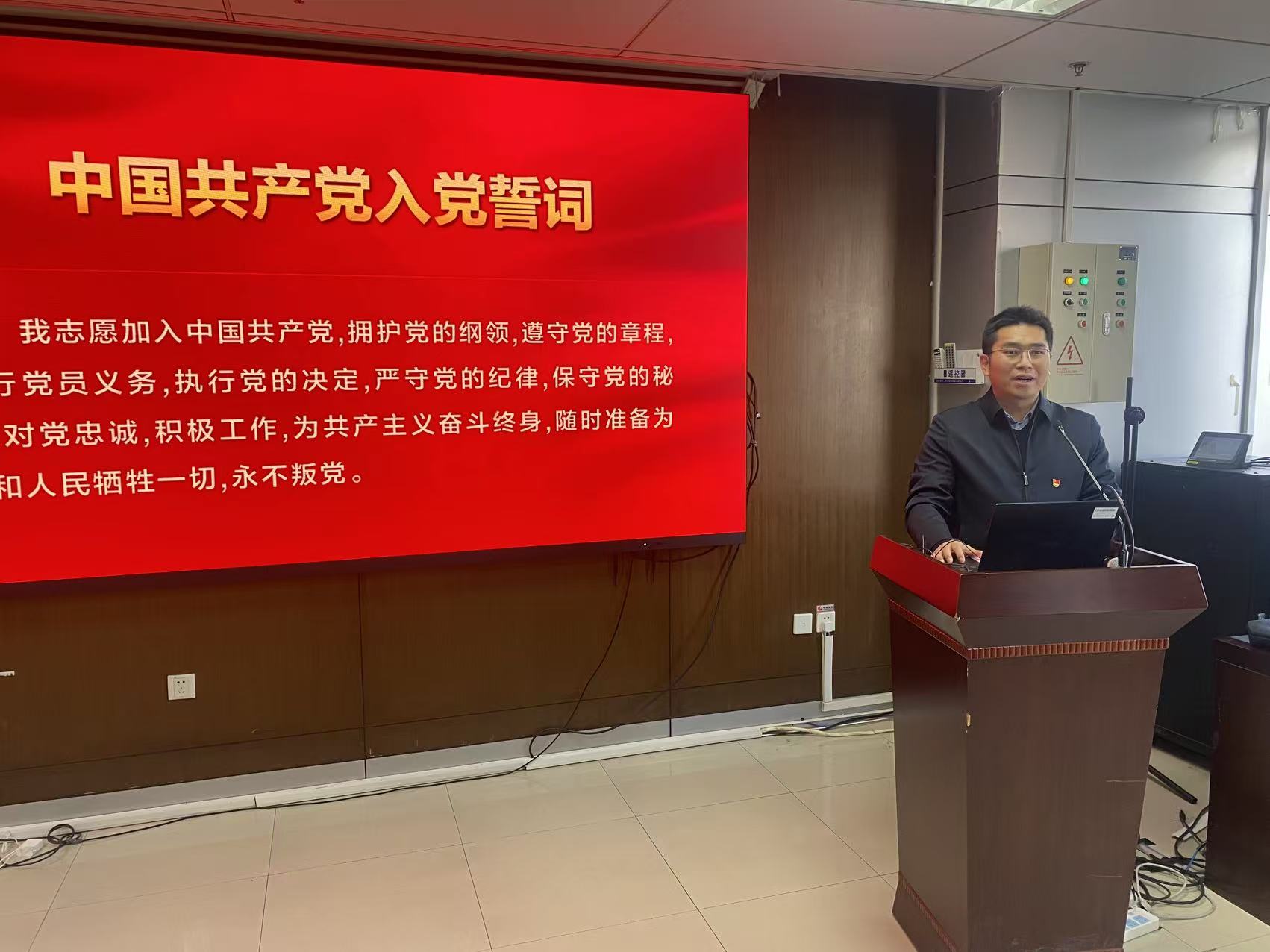 宣誓结束后,新发展党员代表任德馨发言。他首先表达了作为科研工作者与预备党员的激动与自豪之情,坦言加入中国共产党是经过长期深思熟虑的郑重选择。党的坚强领导与科学谋划、前辈科学家 “两弹一星” 精神的感召,以及身边党员同志在科研一线冲锋在前的事迹,让他深刻认识到,将个人科研理想融入党和国家伟大事业,是实现人生价值的正确道路。他表示,在今后的工作与生活中,将始终做到坚定信念、对党忠诚,持续加强理论学习,筑牢思想根基;知行合一、服务奉献,积极参与集体事务,发挥先锋模范作用,以实际行动践行誓言,为强国建设和民族复兴贡献全部力量。