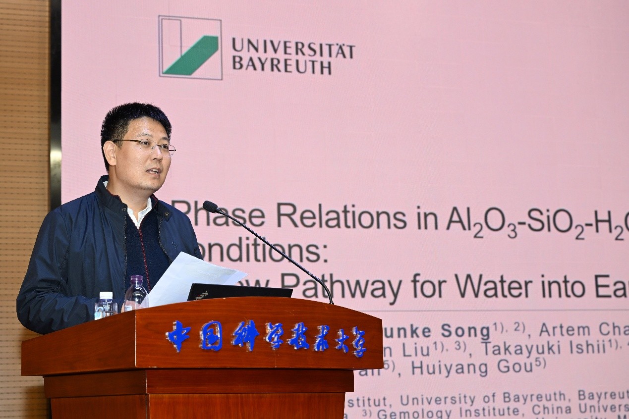 在本次报告中,Katsura教授围绕“水如何进入地球深部”这一关键科学问题,分享了其团队的最新研究成果。他指出,传统观点认为,当海洋板块俯冲到地球约660公里深处时,含水矿物会发生分解,水难以进入下地幔,因而下地幔被认为是“干燥”的。然而,通过高温高压实验模拟地球深部环境,他们发现俯冲板块顶部的沉积物中存在一种特殊高压相,能够在极高温高压条件下稳定存在,像“海绵”一样牢牢锁住水分,并将水携带至下地幔深处。这一发现改变了以往的认知,揭示了地球内部可能远比我们想象的更加“湿润”,也为理解水的深部循环及其对地球演化过程的影响提供了新视角。