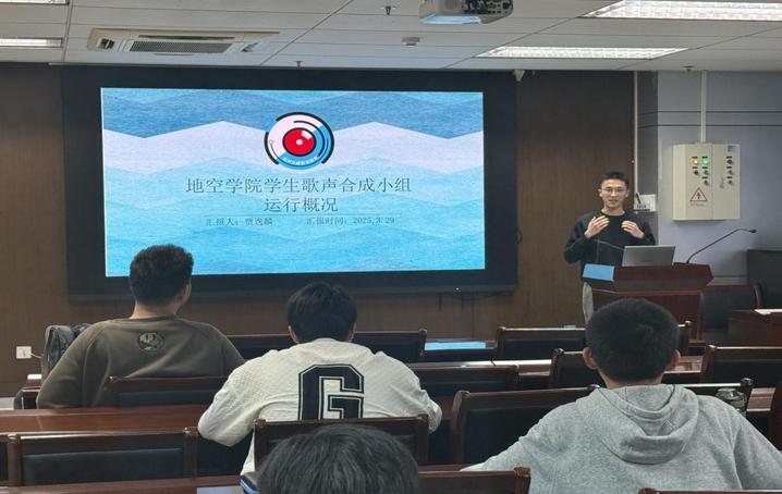 歌声合成研究小组负责人贾逸麟介绍了地空学院学生歌声合成小组的发展历程和取得的成果,分享了建设经验,为更加丰富的团学工作的开展提供了创新独特的思路。