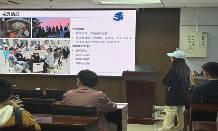 石头科普工作室负责人赵文天在经验分享中,从团队建设、宣传运营和周边设计等多个方面展示了团学工作的新的可能,拓展了参会人员的眼界。