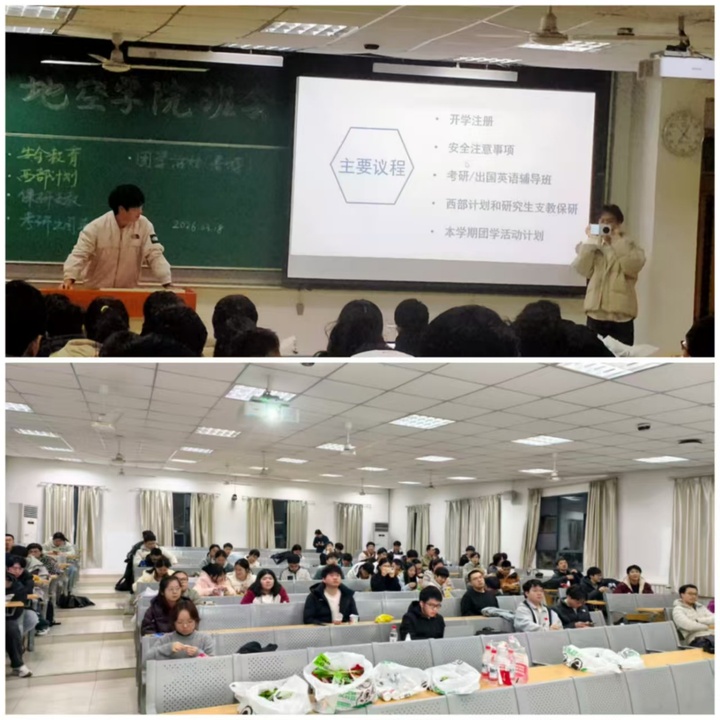 2026 年3月18日,地球和空间科学学院2023级本科班全体学生于第一教学楼1101教室召开专题班会。本次班会由23级本科1班班主任党童、2班班主任夏琼霞共同主持,聚焦网络安全意识提升与升学规划指导两大核心内容,同时明...