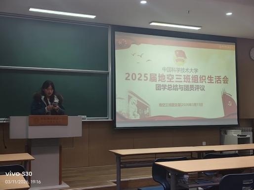 2026年3月12日晚,地球和空间科学学院2024级硕士二班团支部于地空行政楼702A706会议室,召开了2025年度组织生活会暨团员教育评议会议。会议紧紧围绕强化青年思想引领、夯实支部组织基础、提升团员纪律担当、凝聚集体...