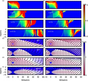 近日,我院胡峰副教授和美国加州大学河滨分校David Oglesby教授、吴葆宁博士生以及南方科技大学陈晓非教授合作,利用有限差分数值模拟走滑断层动力学破裂过程,对比不同破裂速率在平面断层上的分布,发现一维破裂速...