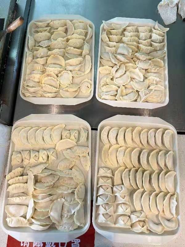 同学们亲手实践,有些同学还别出心裁地尝试包不同形状的饺子。在包饺子的同时,大家也在围绕学习、生活等话题不断交流着。