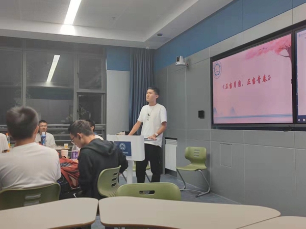班会开始,班长刘国昊进行了讲话,向全班同学传达了班会的主题。之后蔡润良同学发表名为《正当月圆,正当青春》的演讲,其中浓浓的中秋之情勾起了每位同学第一次离家的思乡之愁,而演讲中青春的词句更是激发每一位同学的奋斗激情。在激情的演讲过后,班长组织进行了你画我猜的游戏,并为获胜者颁发了奖品。
