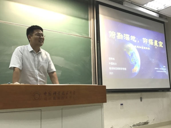 为了更好地让2021级本科新生了解地球和空间科学学院专业方向以及赵九章现代地球和空间科技英才班的基本情况,8月29日晚,学院在第一教学楼1101教室举行了专业介绍会。学院2021级本科生和部分少年班学院学生共计120余人参加了介绍会。会议由2021级本科生班主任卢三、李王晔主持。