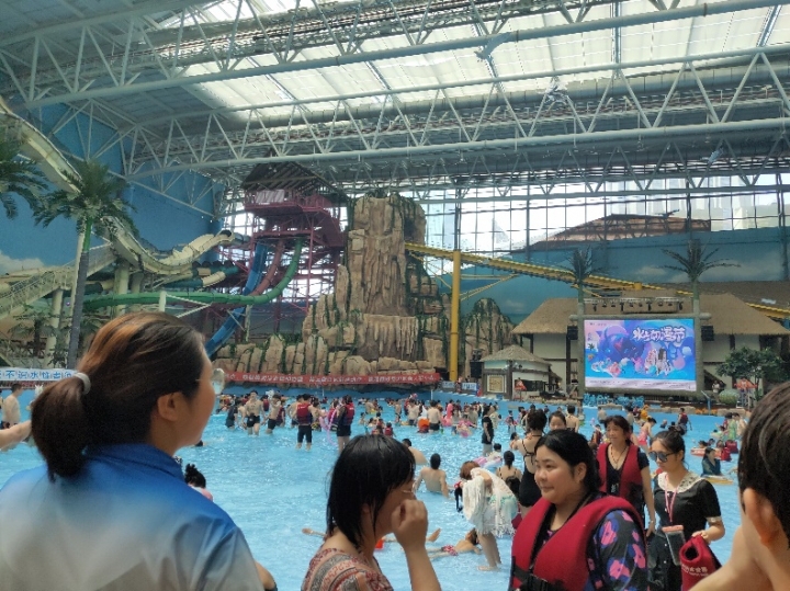 上午九点半,同学们准时在科大东区西门集合,统一乘坐大巴出发前往水世界。