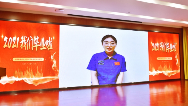 2017届本科毕业生崔艺涵是文昌航天发射场的一位航天科技工作者,多次参与发射任务,“嫦娥姐姐”作为近期毕业生代表通过视频发来致辞。她说:“感谢科大四年的培养,给我留下了充实丰富的回忆。毕业是一个新的开始,你们用才智和学识获得今天的收获,又以明智和果敢迎接明天的挑战,祝各位同学能做自己想做的事,不管处于什么阶段,保持一份热爱,不断开拓进取,永攀科学的高峰,祝你们前程似锦,一帆风顺,在以后的人生中活出自己的精彩。”