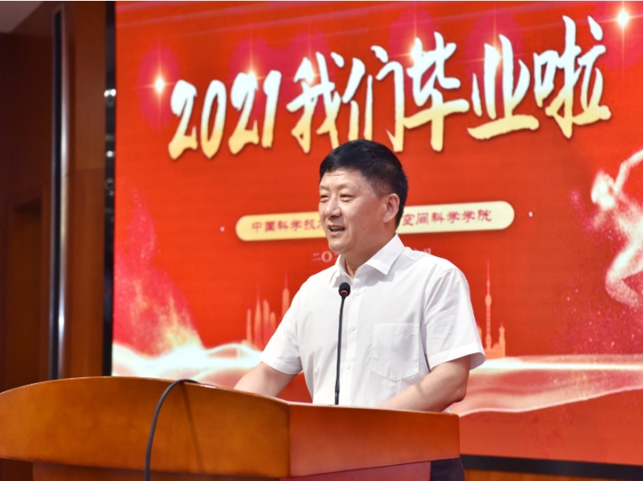 刘斌表示,无论你们将来走到哪里,身上都带着深深的科大烙印。这里曾经是你们的家,也永远是你们的坚强后盾和精神家园。希望同学们与学院保持联系,随时沟通,欢迎大家常回来看看。我们随时等待着和你分享喜悦,也愿意倾听你遇到暂时的困惑时的倾诉。离别是暂时的,我们之间的感情会一直延续。不论你将来做什么工作,都是科大的毕业生。学院会为你们取得的成绩感到骄傲和自豪,也希望大家能为科大的声誉贡献自己的力量。