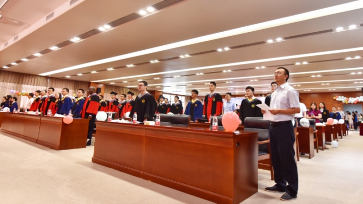 下午4点,陶鑫宣布仪式正式开始。身着学位服的同学们和老师们一起起立,合唱校歌《永恒的东风》,在激越昂扬的歌声中重温“红专并进、理实交融”的校训。