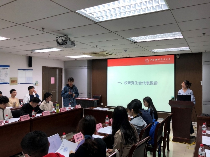 校研究生会委员刘明珠致辞。校研会秉承为校全体学生服务的宗旨,开展了丰富多彩的活动。校研究生会与地空研究生会关系也十分紧密,希望未来合作更进一步。