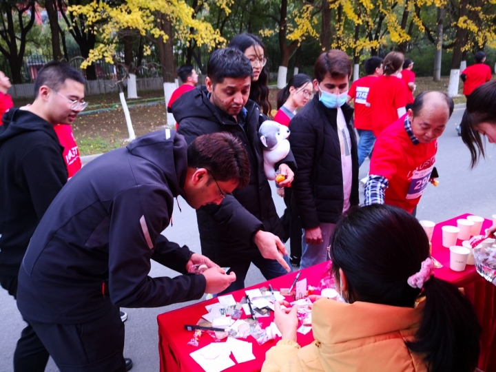 我院志愿者们在现场协助运动员们完成活动的同时,也为在场的所有师生提供热心服务。各学院摊点各具特色,不仅提供矿泉水和水果,还安排了一些趣味活动,让同学们在参赛之余可以在此放松身心,感受活动的乐趣。
