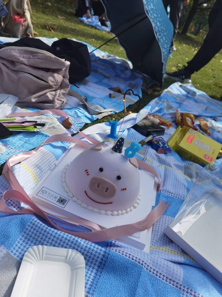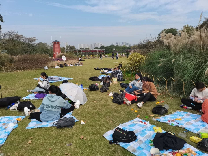 进去之后,同学们首先自由参观植物园,体会充满生机的感觉。中午时分,全体人员在草坪上几个人一组用自己带的食物和班委采购的食物聚餐,期间还有部分同学一起打牌,还正好遇到一位同学过生日,同学们一齐给她庆祝生日。