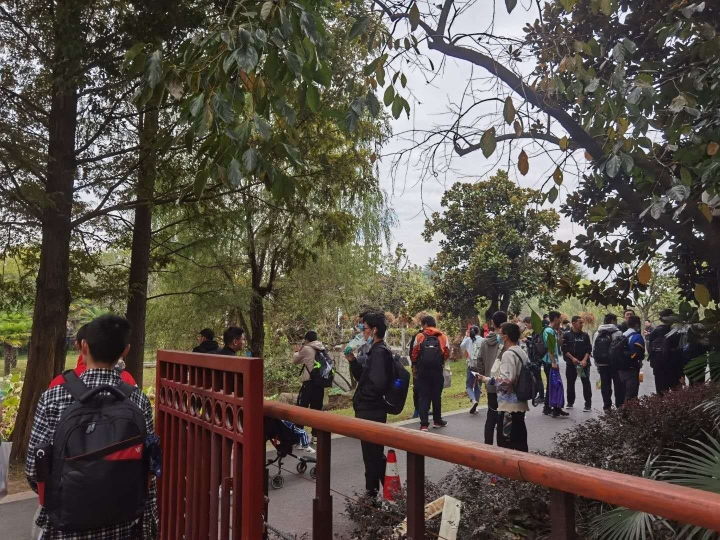 部分同学率先出发坐公交车将食物运到场地,在此之前,各位同学们也都各自提前买了食物。随后大部队坐公交赶到,同学们一同进入植物园参观。