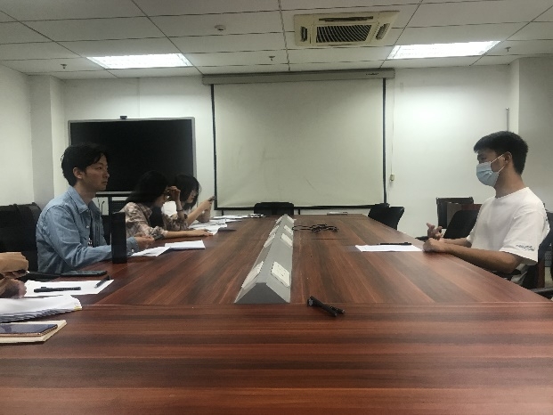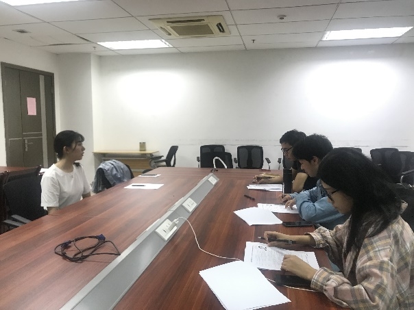 无领导小组讨论结束后,项目组对报名同学进行单独面试,在面试过程中,新同学们坦然大方,简单自我介绍之后,与师兄师姐们交流自己对研会的看法和期待以及对以后发展的规划。