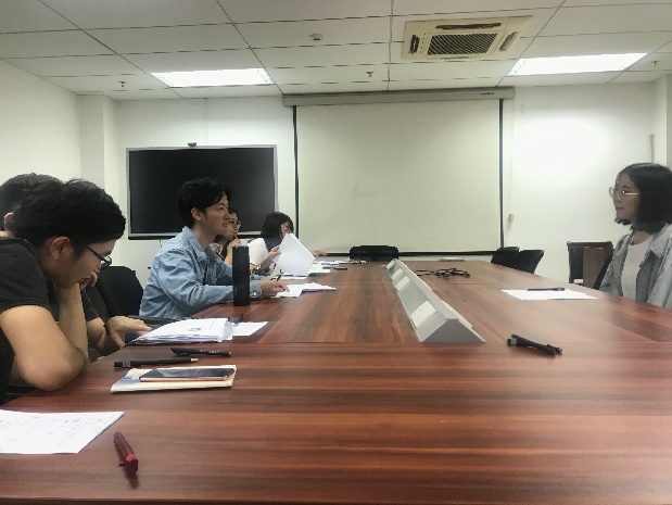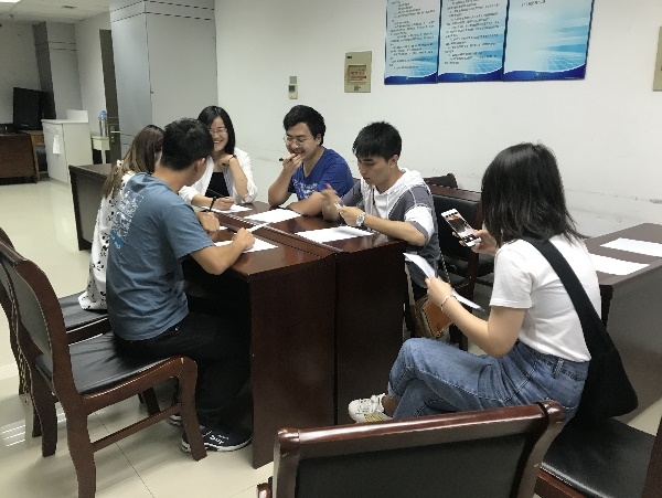 在前期宣传结束后,院研会项目组对报名同学进行分批面试。面试分为两个环节,无领导小组讨论和单独面试。在无领导小组讨论阶段,参加面试的同学阅读给定的新闻材料后,畅所欲言,积极讨论,表达出自己的观点以及对他人观点的质疑,现场气氛十分活跃。