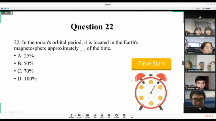 本次比赛共有20支队伍参加,其中成员包括本科、硕士研究生和博士研究生。本次比赛邀请了地球物理专业博士后朱慧宇担任比赛主持人。比赛共分为两个阶段。第一阶段为相同分数的必答选择题,第二阶段为判断必答题。线上与现场的气氛十分活跃。