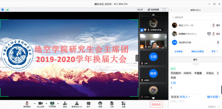 5月20日晚上7:00,地空学院研究生会换届选举大会在线上腾讯会议圆满举行。此次大会旨在通过换届答辩,完成研会工作交接,并总结工作经验,传承地空学院研究生会的工作精神。大会由时任研究生会主席赵壮主持,时任研究生会主席团、各部门负责人出席会议并担任大会委员,共计约二十人参会。