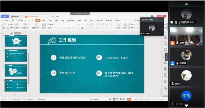 最后,赵壮总结到,研会还有很大的成长空间,鼓励大家在新学期的工作中能更加严格要求自己,并希望在今后的工作过程中,各部门能够加强学习,拓展工作思路,积极面对遇到的一切困难,做到精益求精。