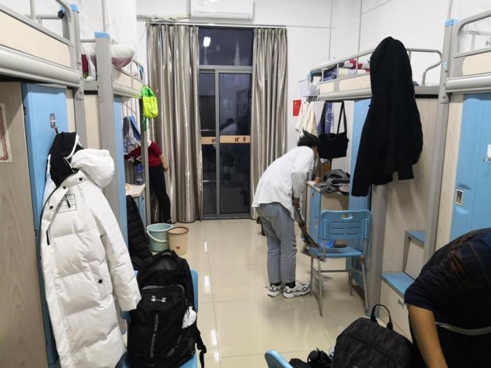 年末临近期末考试,大家学习都很忙,但每个寝室,每一位同学都有抽出时间来认真的打扫。中午,晚上,都能看到同学们兴致勃勃地拿着抹布,拖把,奔忙于洗手池和寝室之间,充满辞旧迎新的朝气与热情。有一位同学说:“平时我们寝室的同学们学习忙,大家天性又懒,所以几乎不花时间在寝室打扫上,连衣服有时都直接用洗衣机洗。这一次经过这个活动,又是跨年,大家很难得地劳动起来,将寝室环境提升到了一种无与伦比的境界!”打扫卫生费时费力,但看到干净舒适的寝室环境,同学们一个个开心地笑了。
