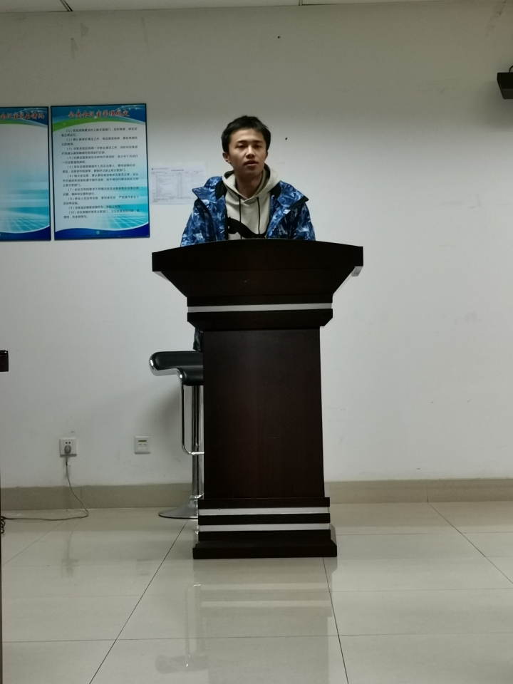 办公室主任彭牧言同学报告:表达对本学期报销这一办公室主要职能落实到位的赞赏,表示对办公室成员面对枯燥的日常值班从不退缩的肯定。
