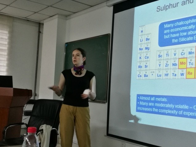Kiseeva博士与黄方教授课题组就相关合作研究展开深入讨论。合作项目包括:利用研究程度非常高的多种幔源岩石及其单矿物的Mg-Fe同位素组成,为古老克拉通的形成和演化历史进一步提供新的信息;结合高温高压实验和高精度的同位素金属稳定同位素分析,系统测量高温高压下金属/硅酸盐熔体间Cu-Zn同位素分馏系数,为Cu-Zn同位素体系在岩浆矿床的形成、小行星核-幔分异作用等方面的应用提供重要依据。
